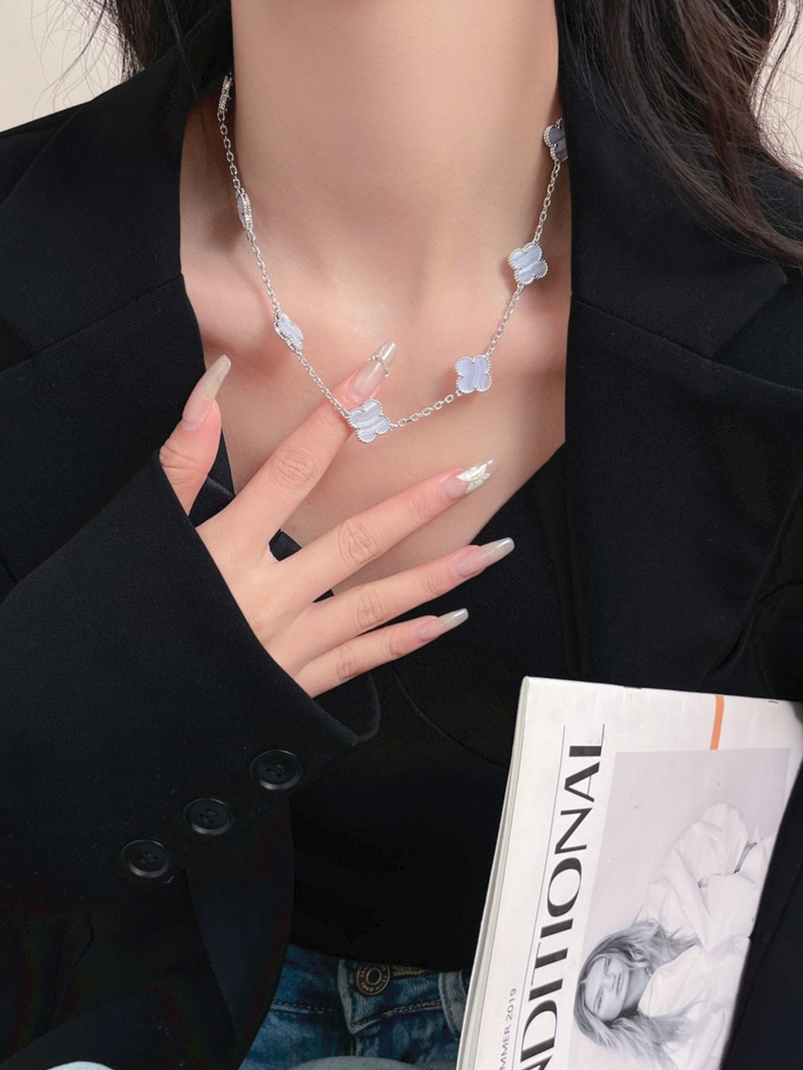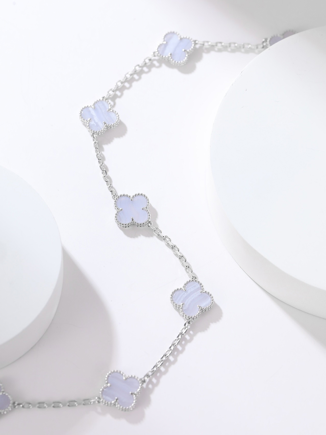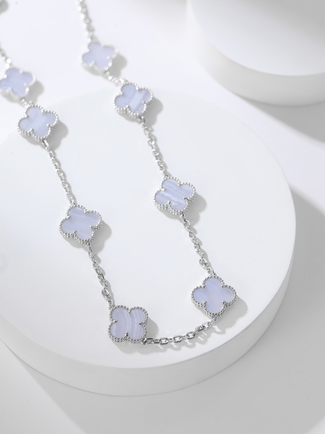 Van Cleef & Arpels Classic Pattern White Gold Chalcedony Necklace for Women